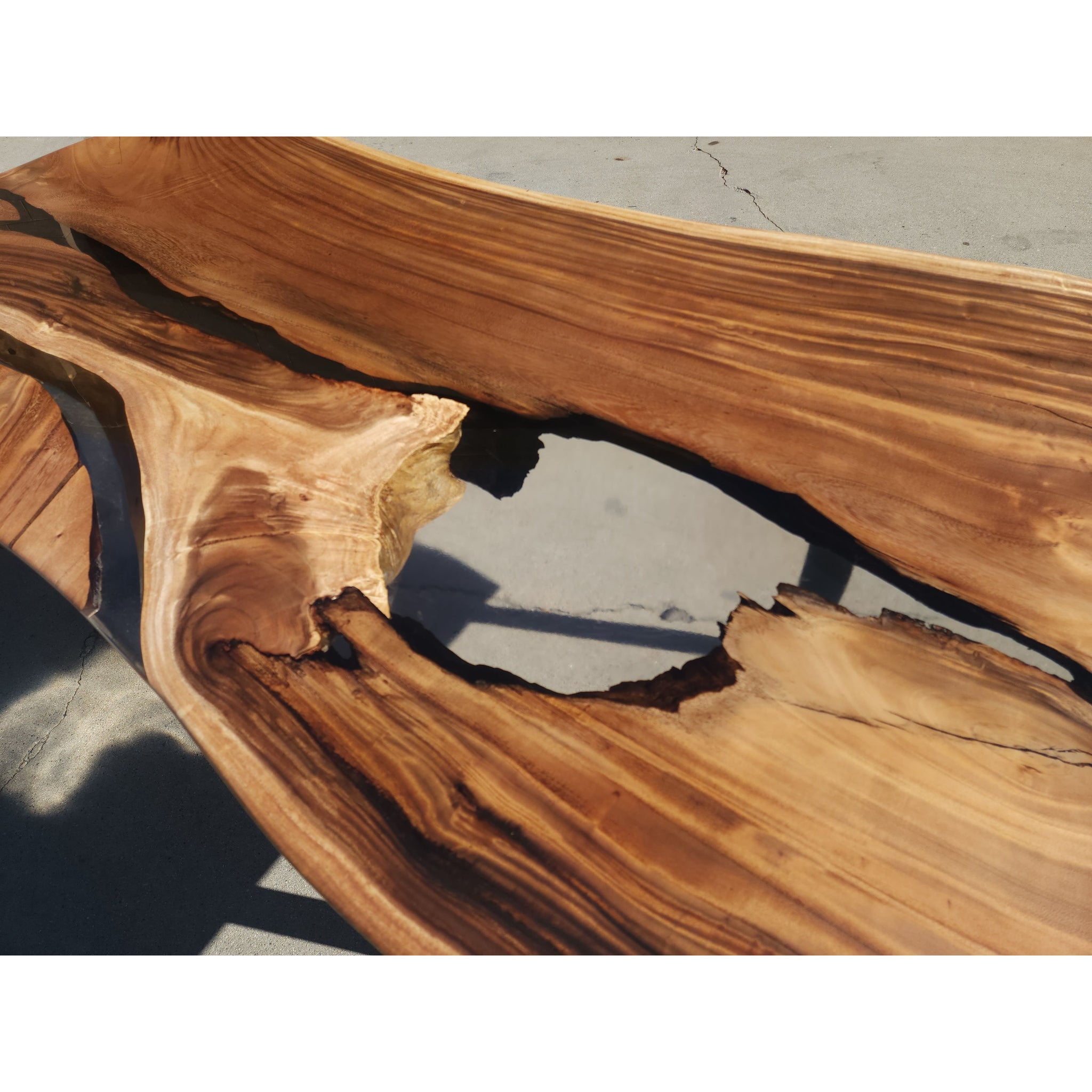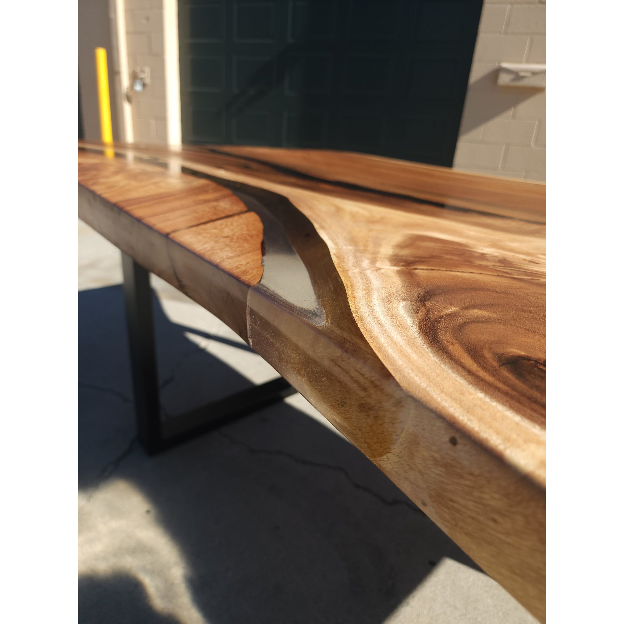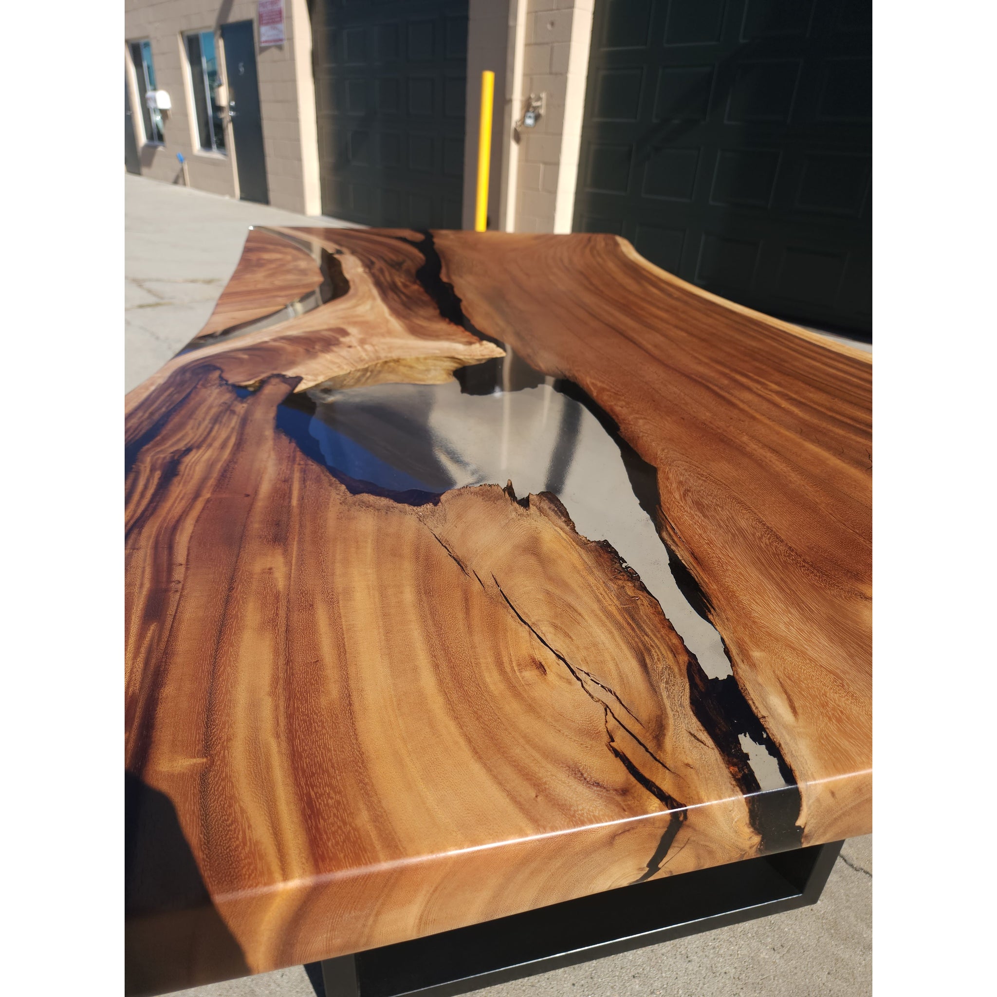 While this clear resin river slab was a custom order for a client of ours, we are now accepting custom orders for resin (any color) and/or river tables! Prices will vary depending on overall size, thickness, type of wood, and amount of resin used. Please contact us for more details.